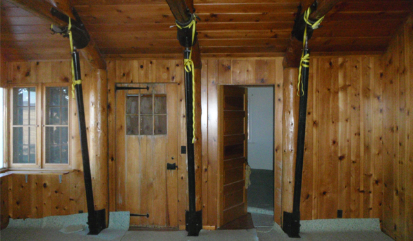 Historic preservation work on the Cottage included re-pointing of original lava stone masonry, re-chinking of log work, re-glazing of original window panes and stabilization of the wood work on the window frames and sills. Structural elements that had been damaged or broken during the heavy snows were being repaired while temporary structural supports are installed during the winter months while the residence is closed to the public.