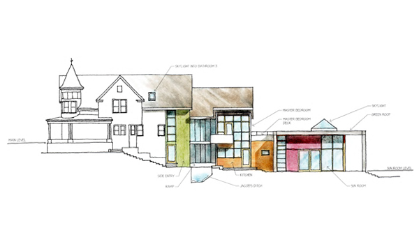 Trout Architects was one of four firms to propose ideas for a remodel of a historic home in Boise. The challenge was to bring the historic home back to it’s original splendor while adding new living and working additions to the home for a large, active family. What you see here is what we presented to the client.
